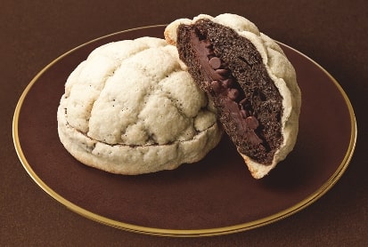 ベルギーチョコレートを使用したチョコレートクリームとベルギーチョコレートチップをサンドしたショコラメロンパンです。
