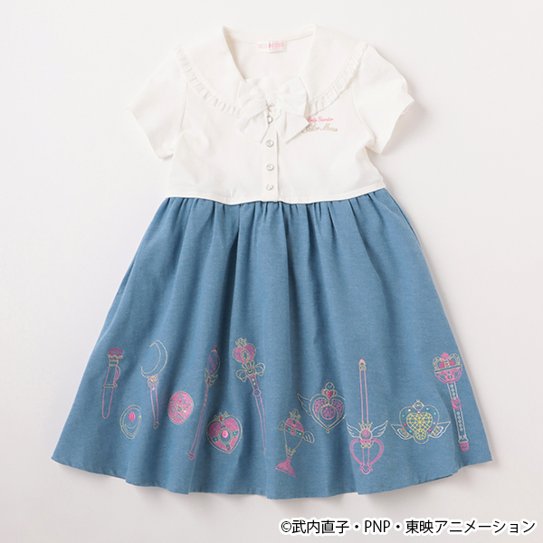 裾に「セーラームーン」の歴代アイテムが刺しゅうで施されたドッキングワンピース。