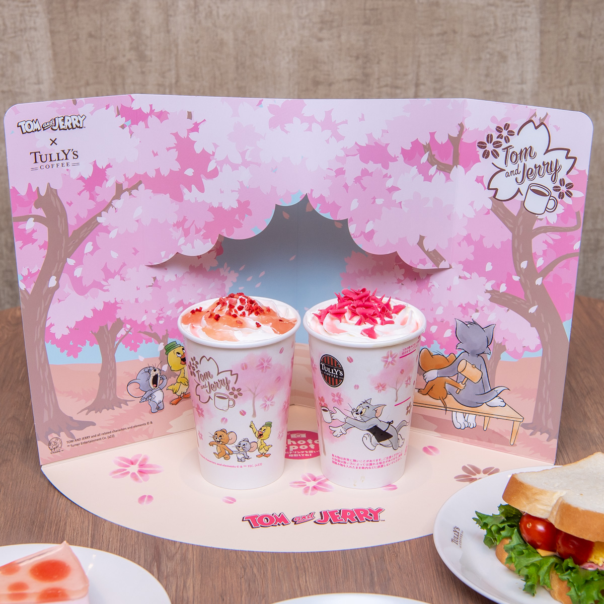 タリーズコーヒーでは、今回「トムとジェリー 桜舞うスペシャルコーヒータイム」と題し、「トム」と「ジェリー」のワクワクする楽しい世界観を「桜」と融合させ、ドリンクやフードなど、様々な商品をお届け。