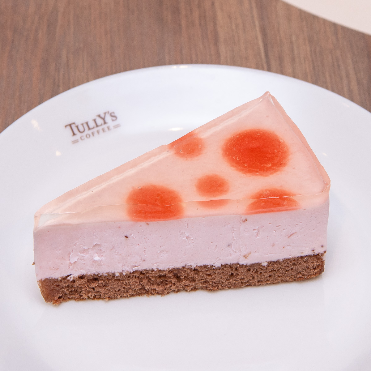 苺の甘酸っぱい味わいがアクセントのチーズムースケーキに、ほんのり桜が香るスイーツ。