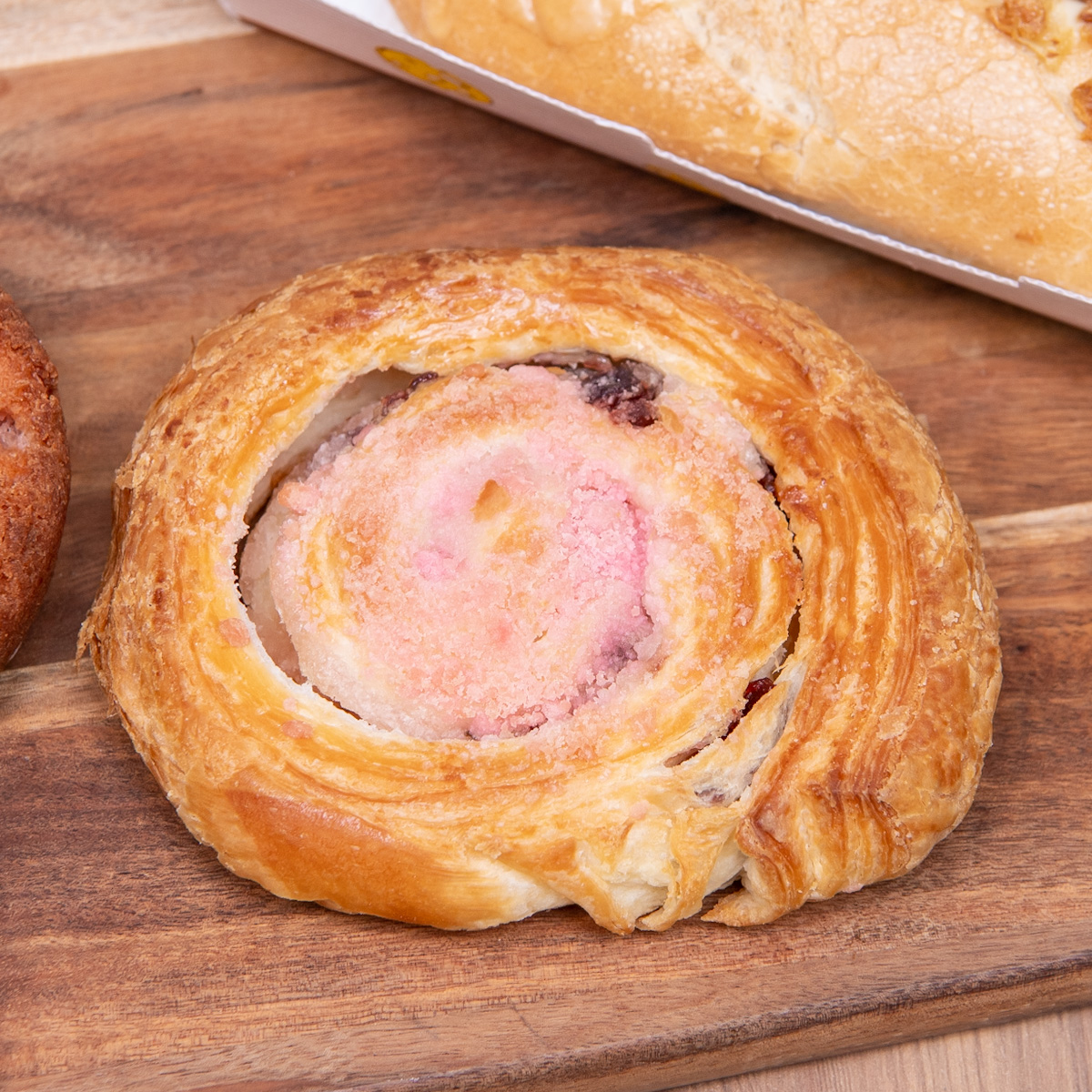 桜色のクランブルをデコレーションした、見た目も春らしいデニッシュです☆
