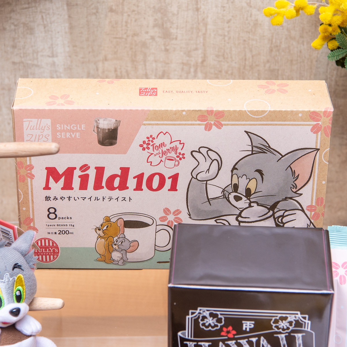 ティーカップに隠れる「ジェリー」と「タフィー」、ティーポットを持った「トム」が描かれた「タリーズジップス シングルサーブ マイルド101」