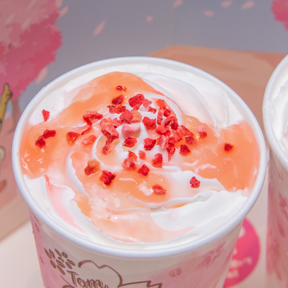 桜フレーバーのソースがふわっと香る「トムとジェリー &TEA 桜香る桃のティーオーレ」