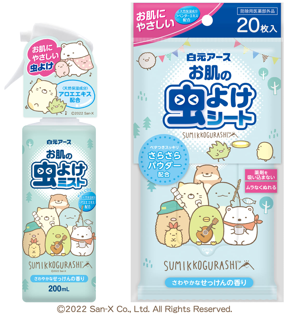家族みんなで使える虫よけ剤「お肌の虫よけミスト すみっコぐらし」と「お肌の虫よけシート すみっコぐらし」が登場。