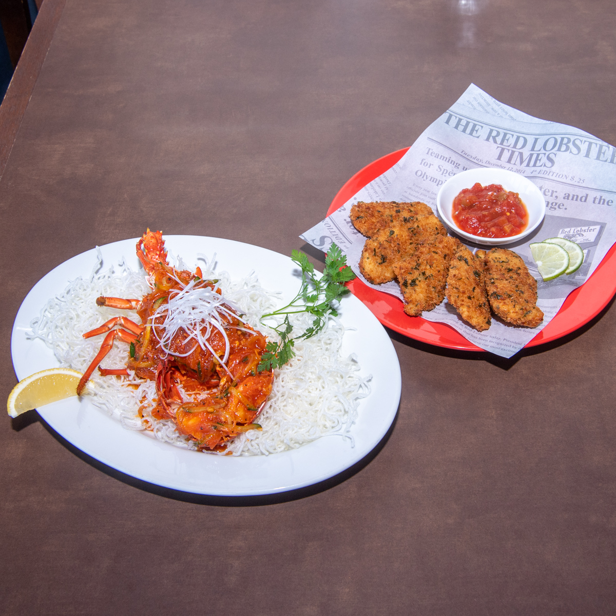 シンガポール風チリソースで仕上げたロブスターは、見た目にも「レッドロブスター」を感じさせる一品でした。