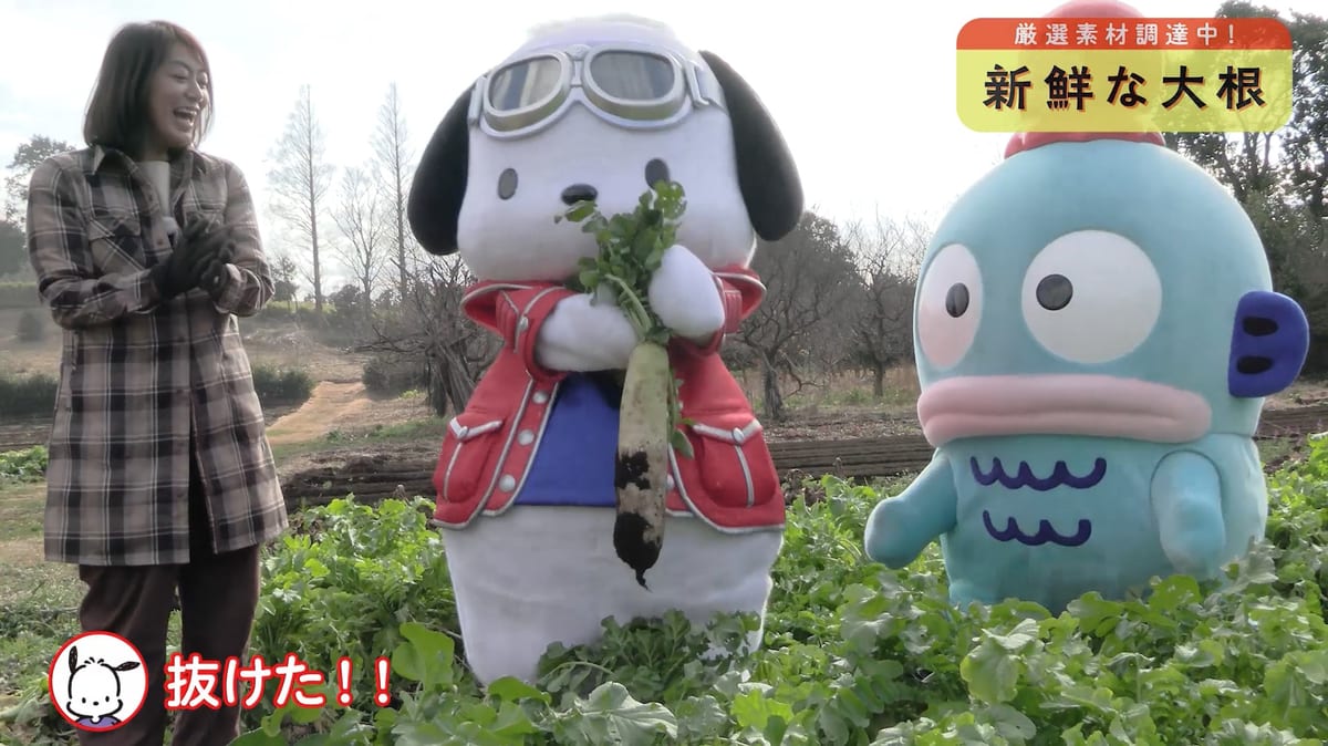 「ポチャッコ」と「ハンギョドン」は、ブリ大根に使う大きな大根をがんばって収穫します。