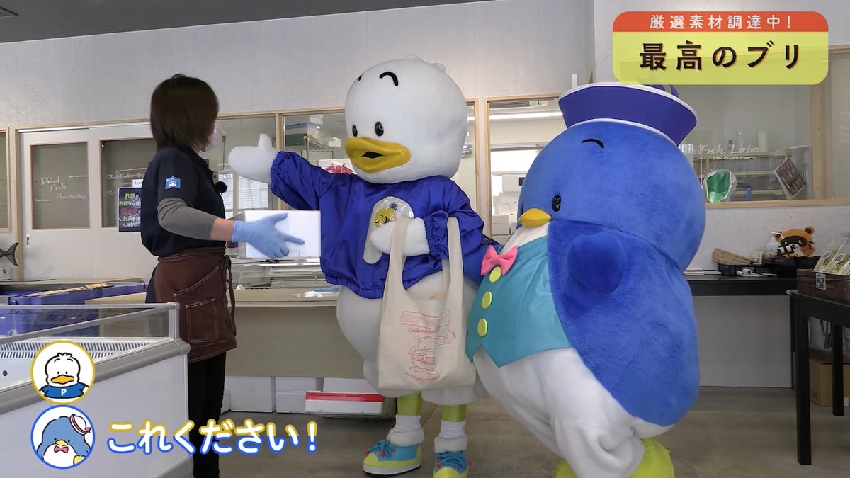 ブリを調達しに海に出向いた「タキシードサム」と「あひるのペックル」
