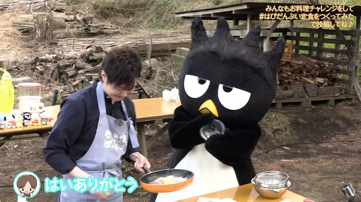 動画は、「バッドばつ丸」と「けろけろけろっぴ」がリュウジさんに「至高の!はぴだんぶい定食」を作ってほしいと依頼するところから始まります。
