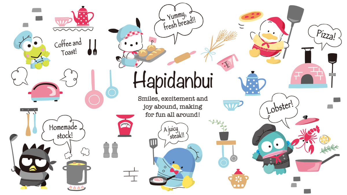 全国のサンリオショップ、百貨店のサンリオコーナーおよび、サンリオオンラインショップに「はぴだんぶいハッピーグルメデザインシリーズ」が登場。