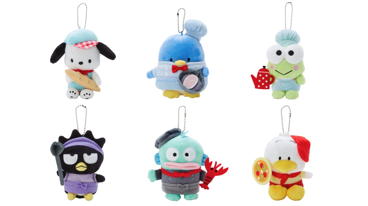 シェフや料理人になりきった「ポチャッコ」「タキシードサム」「けろけろけろっぴ」「バッドばつ丸」「ハンギョドン」「あひるのペックル」の全6種が揃います。