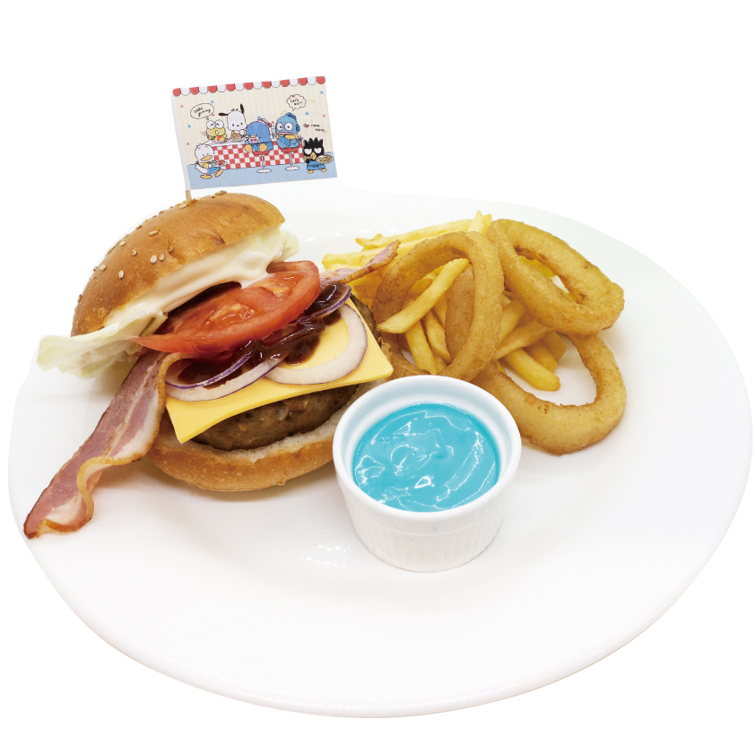 ベーコンチーズバーガーをメインにフライドポテトなどの付け合わせ、ソフトドリンクがセットになっています。