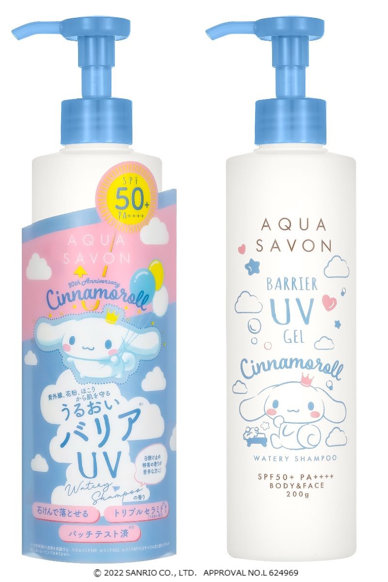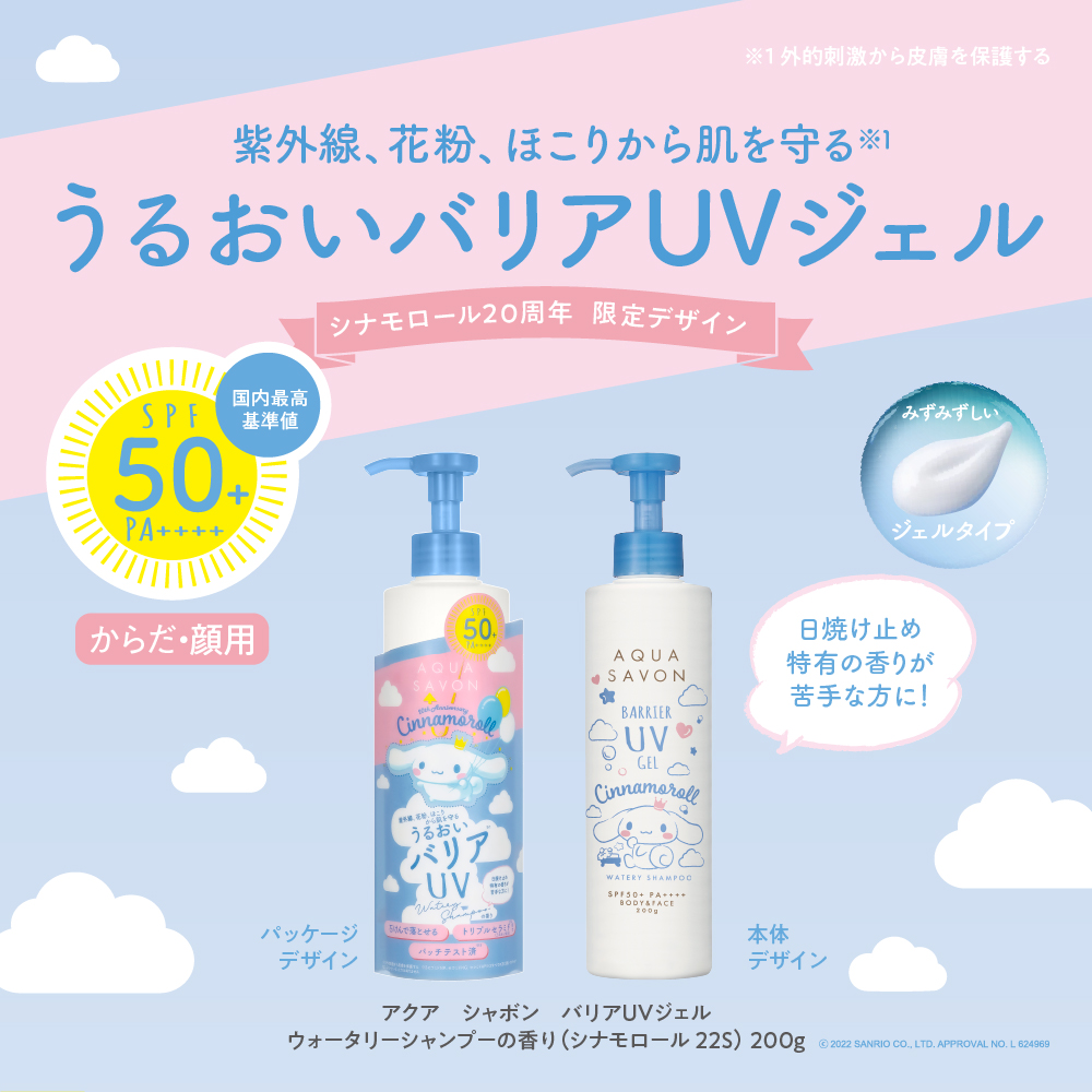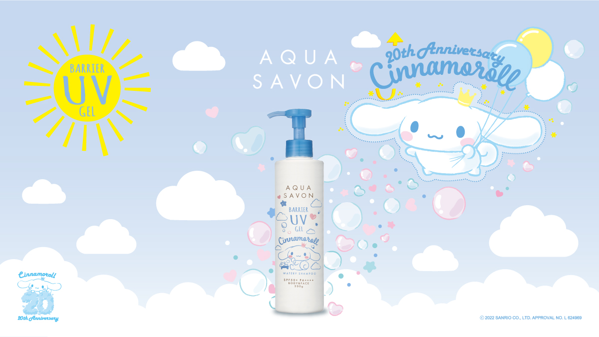 アクア シャボン バリアUVジェル「シナモロール」20周年限定デザインは、2022年2月10日(木)よりEC先行発売、2月23日(水)より一般発売です☆