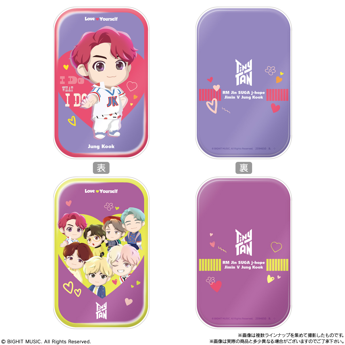 ラベンダー×ピンクカラーの「Jung Kook」デザイン、そしてイエローのハートの中にメンバーが大集合した「TinyTAN」デザインもラインナップ☆