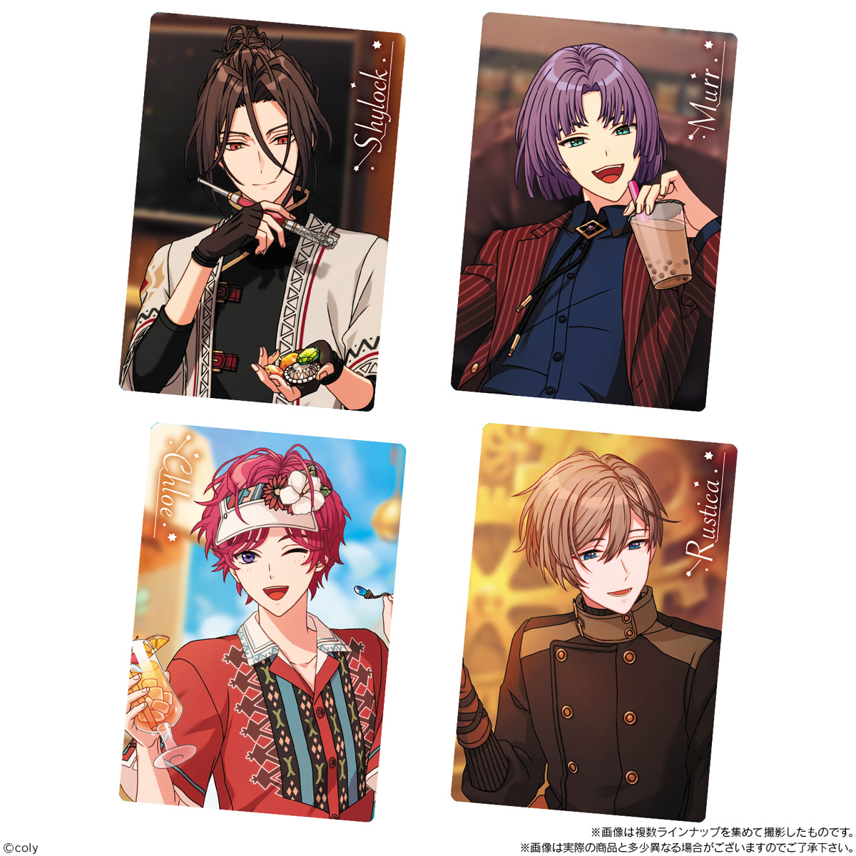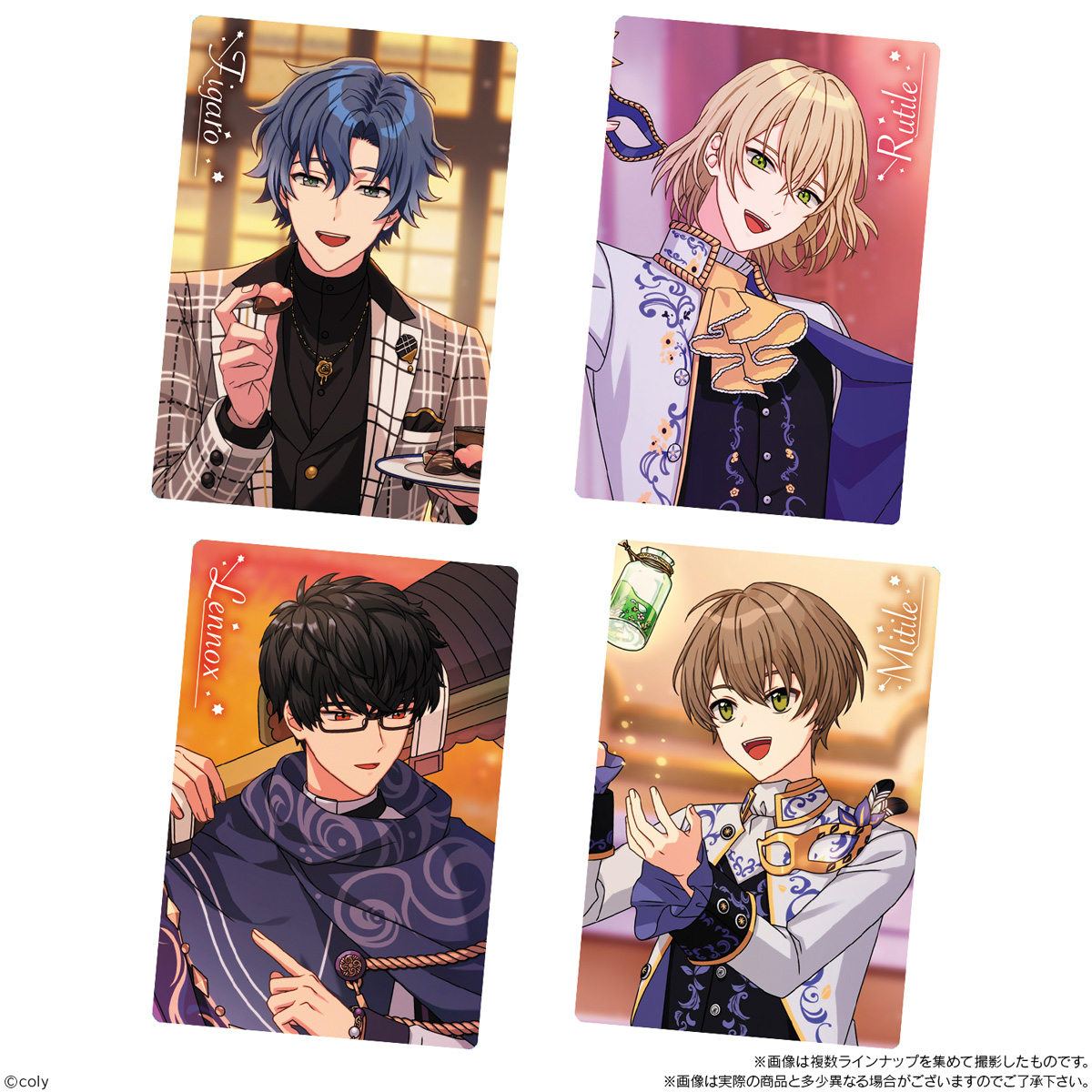 パッケージの中に、素敵な衣装に身を包んだ魔法使いたちの煌めくメタリックプラカードをランダムで1枚収録。