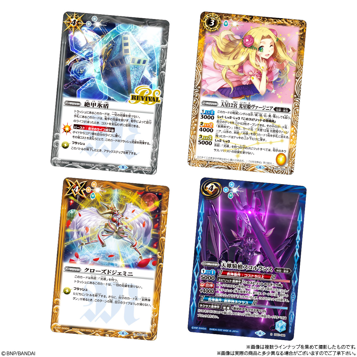 「絶甲氷盾」「天星12宮 光星姫ヴァージニア」「クローズドジェミニ」「天蠍騎槍スコルランス」の全25種からランダムで1枚封入。