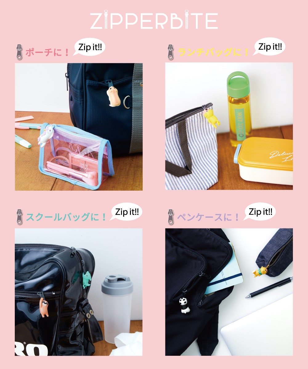 ジッパーに簡単に装着できる、キーホルダーとは違った新感覚のジッパーアクセサリー「ZIPPERBITE(ジッパーバイト)」