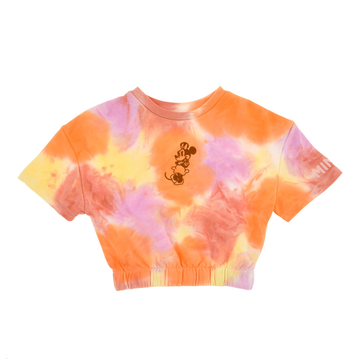 明るい色合いのタイダイ染めに「ミニーマウス」の刺しゅうが映える半袖トレーナー。
