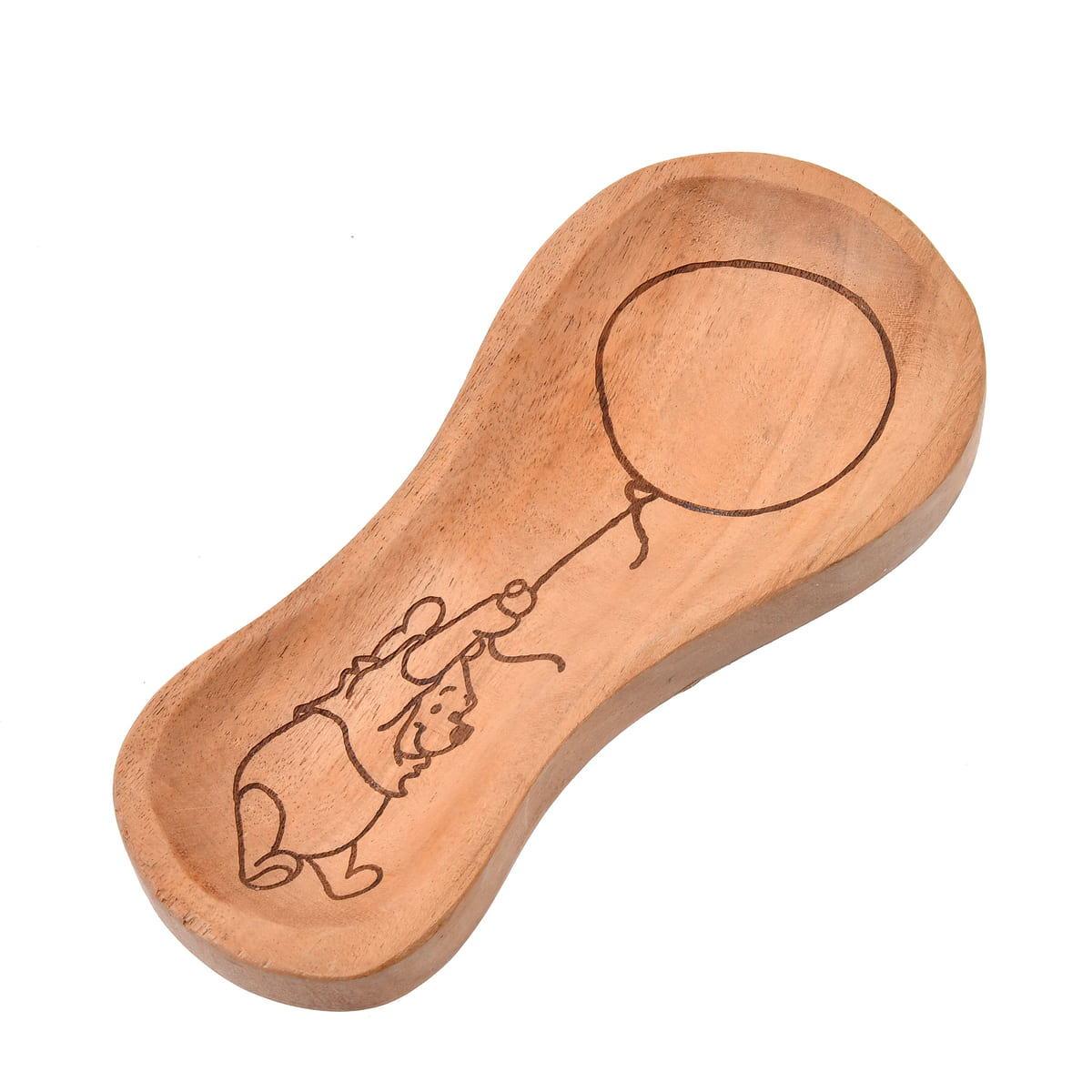 大きな風船にぶら下がる「プーさん」がデザインされた木製カトラリーレスト。