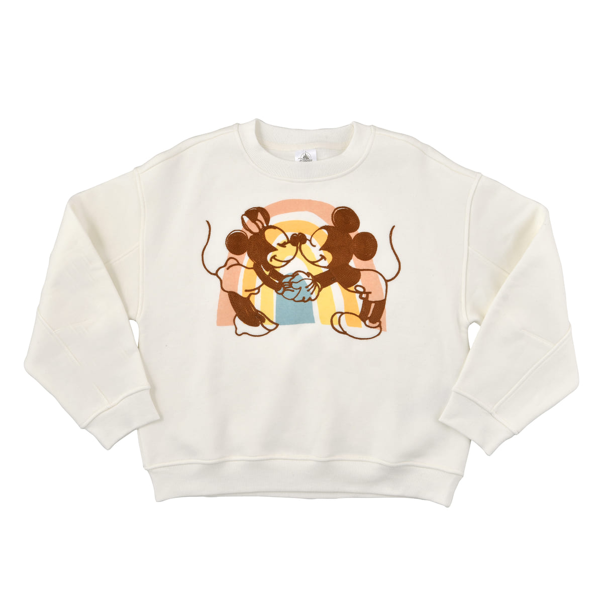 「ミッキーマウス」と「ミニーマウス」に、虹のロマンチックなデザインを合わせた長袖トレーナー。