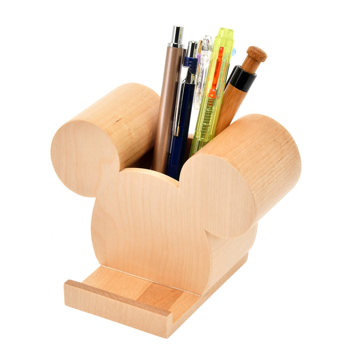 シンプルでモダンなフォルムとナチュラルな質感がおしゃれなミッキーモチーフのペンスタンド。