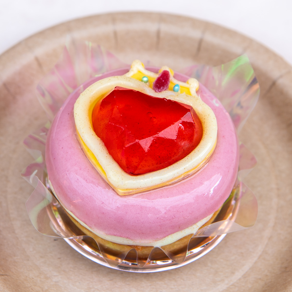 キラキラのハートも再現された、かわいいデザートです。
