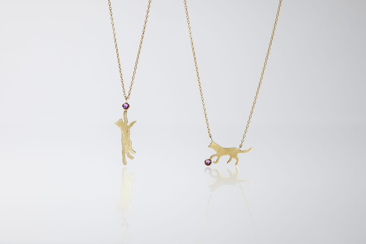 マザーハウスには、「with heart」シリーズより、2種類の「猫」のネックレスが並びます。