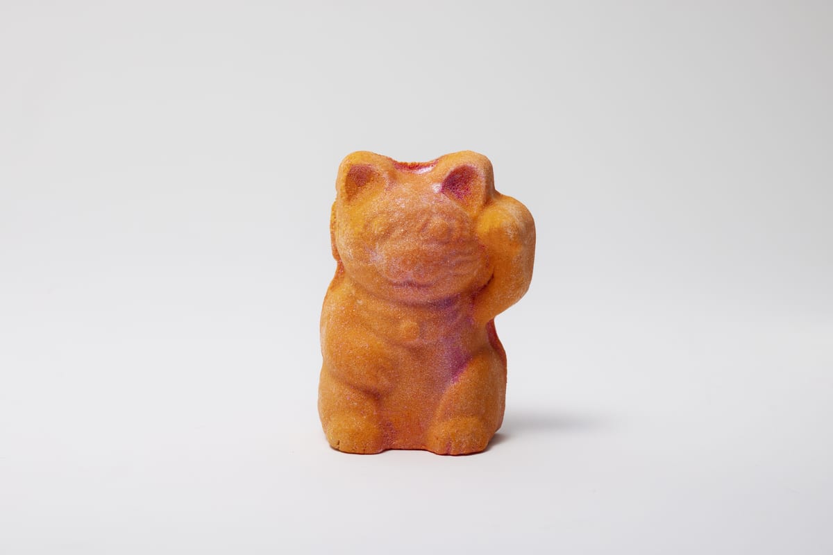 フューシャピンク色の「招き猫」は、ジャスミンやネロリ、イランイランなどの香り、プラスチックフリーのラメが輝く柔らかな泡を作り出す、リフレッシュにぴったりなバブルバーです。