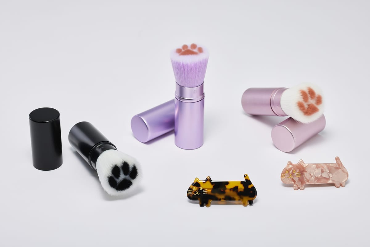 LAZY SUSANには、ブラシに「猫」の肉きゅうがデザインされた「メイクブラシ」や「猫」のダイカット型「ヘアクリップ」がお目見え。