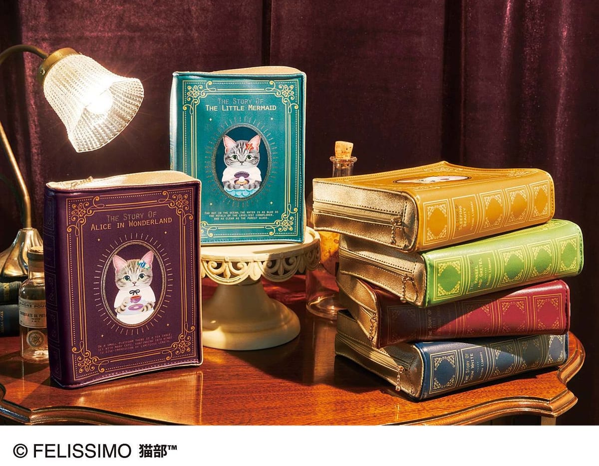 2F トレイダーズ・パッセージに期間限定で出店するフェリシモ猫部TMには、「猫が主役の洋書風ポーチ」がお目見え。