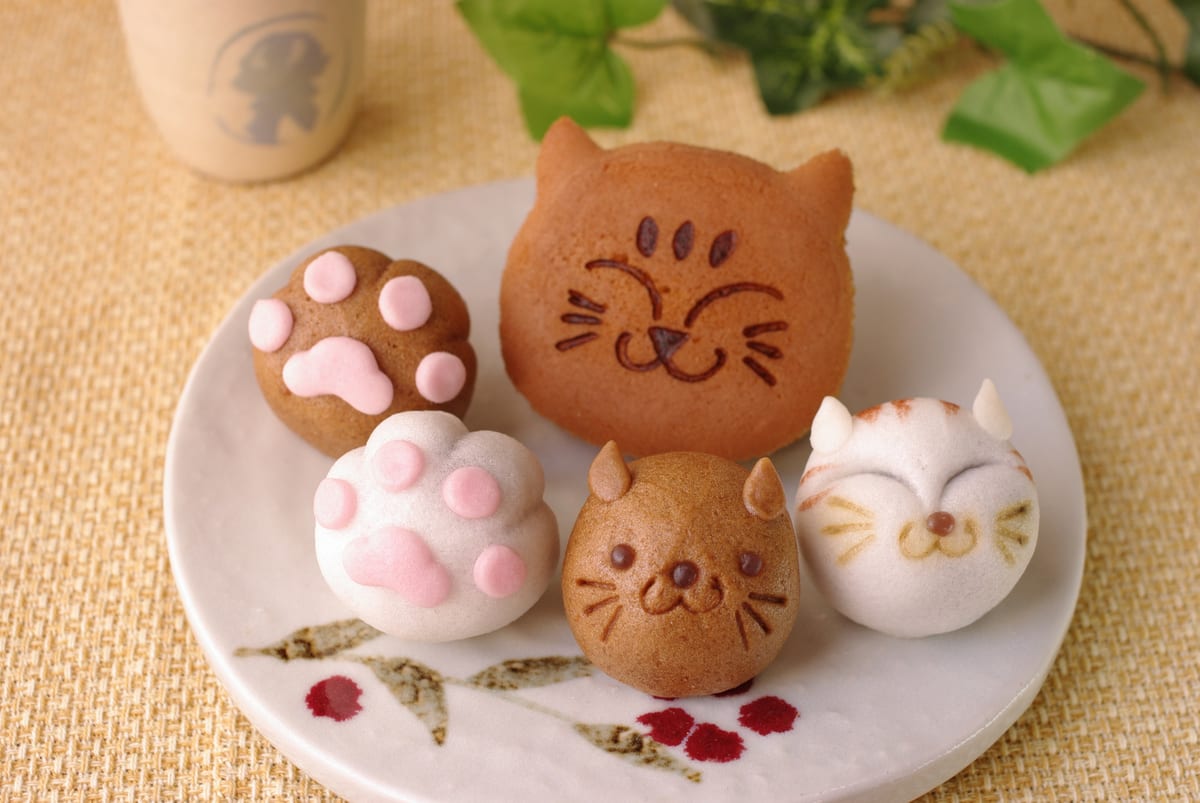 職人がひとつひとつ手作業でつくっている、可愛い「猫」の形のどらやきやお饅頭が並びます。