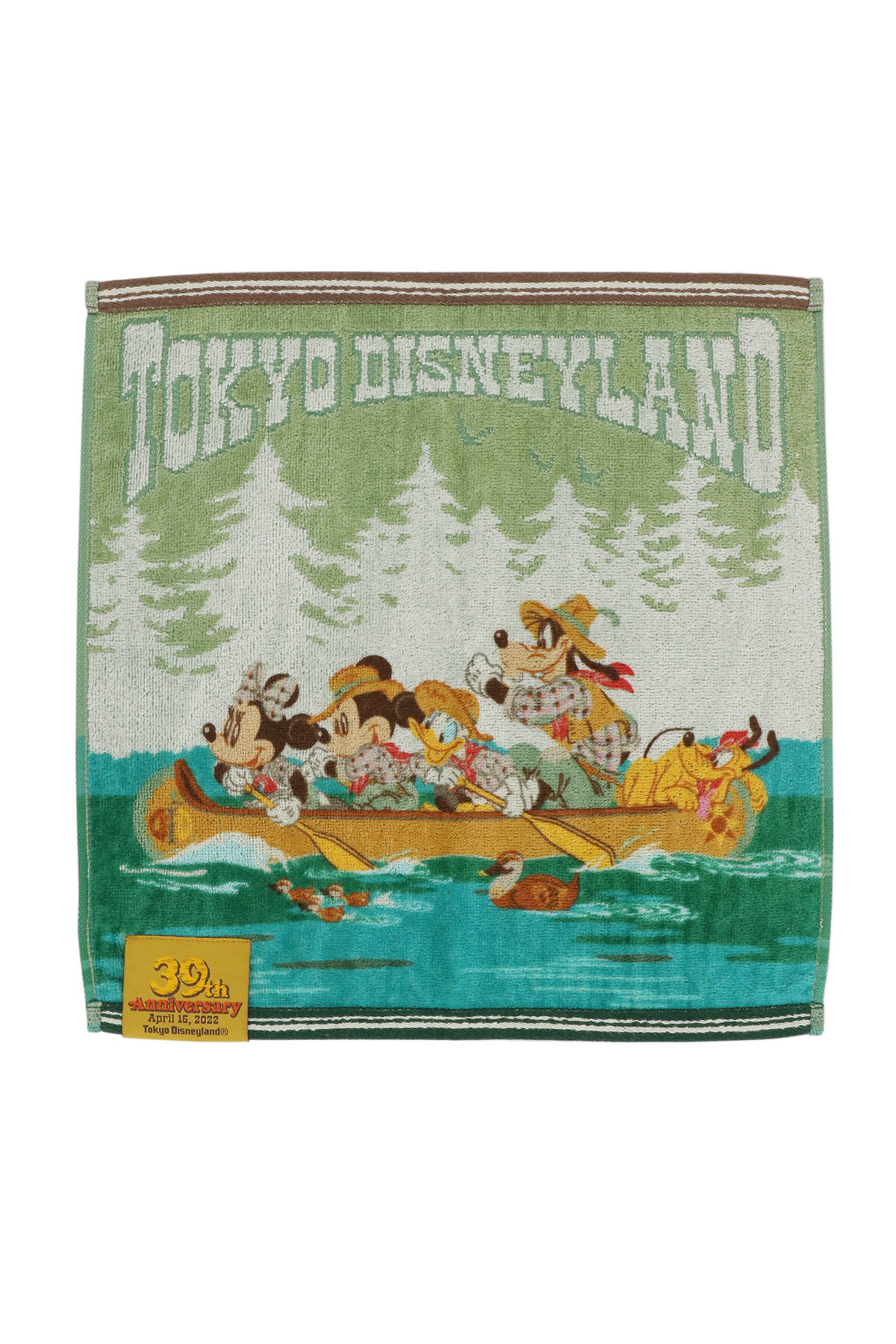 ディズニーの仲間たちがカヌーを楽しんでいるデザインのウォッシュタオル。