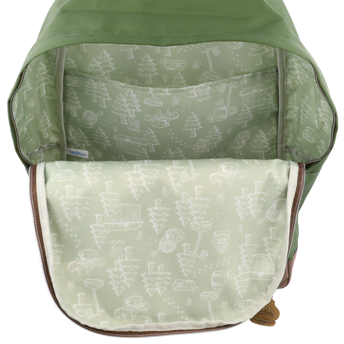 外のポケットはカヌーのデザインで、ぬいぐるみバッジをいれるとカヌーに乗っているようなデザインに。