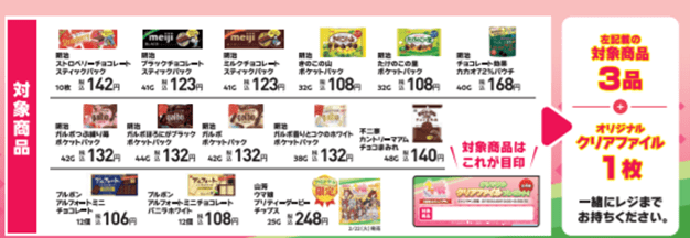 対象のお菓子を3個購入ごとに1枚もらえる「A4 クリアファイル」