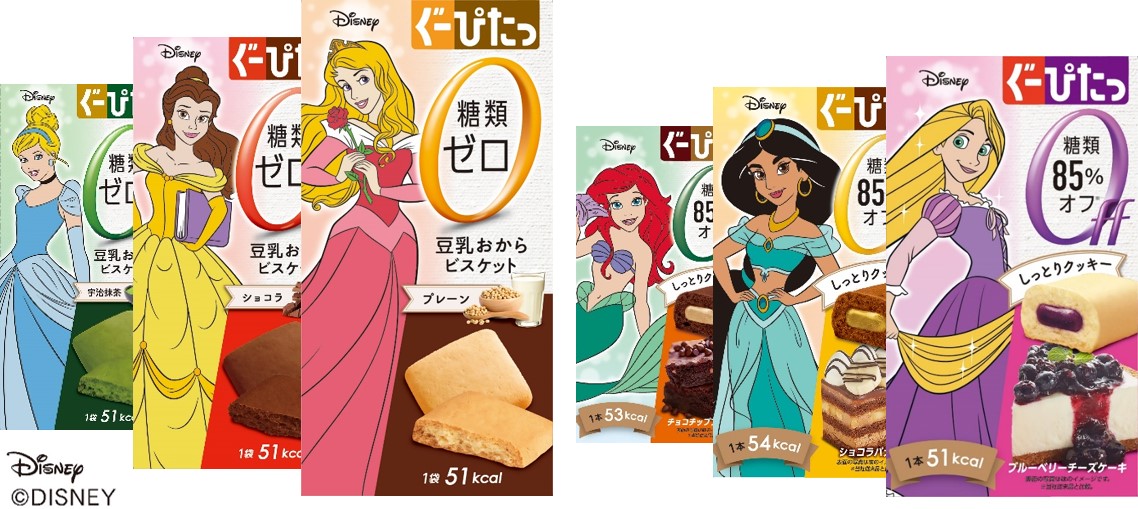 「ぐーぴたっ 豆乳おからビスケット」3品と「しっとりクッキー」3品が、6人の「ディズニープリンセス」オリジナルパッケージで数量限定発売されます☆