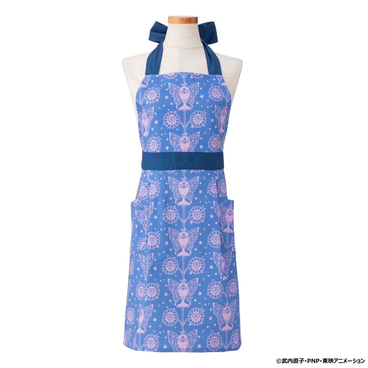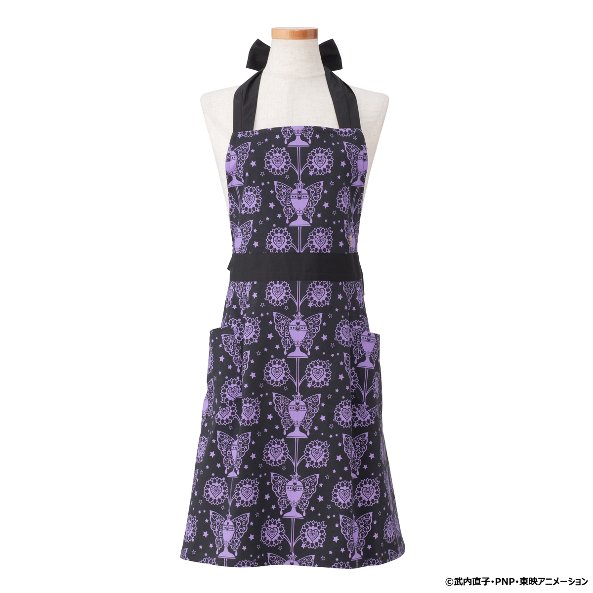 レインボームーンカリスにセーラー10戦士の守護星マークを取り入れたバタフライモチーフを組み合わせた、ポップなテイストのエプロン。