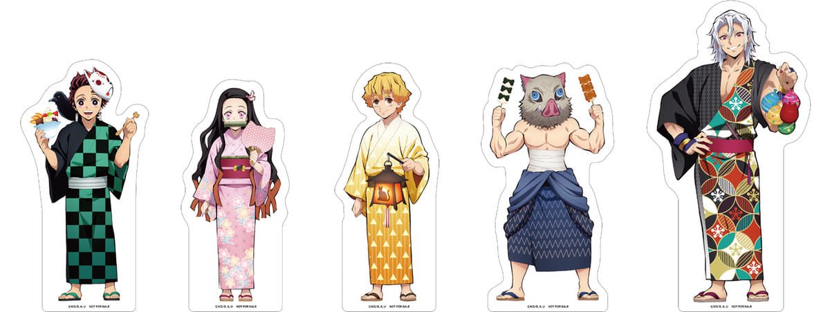 『テレビアニメ「鬼滅の刃」祭日和(まつりびより)』では「お祭り」をテーマに、和装を着用した「竈門炭治郎」「竈門禰豆子」「我妻善逸」「嘴平伊之助」「宇髄天元」のufotable描きおろしの等身イラストが登場。