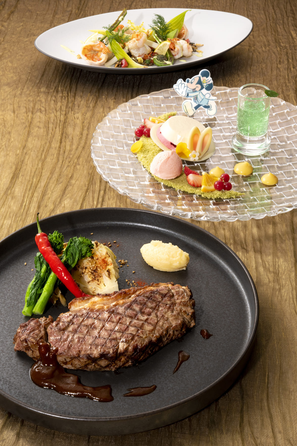 ディズニーアンバサダーホテルにあるカリフォルニア料理を中心としたコースが楽しめる「エンパイア・グリル」では、コース料理とスペシャルドリンクを提供。