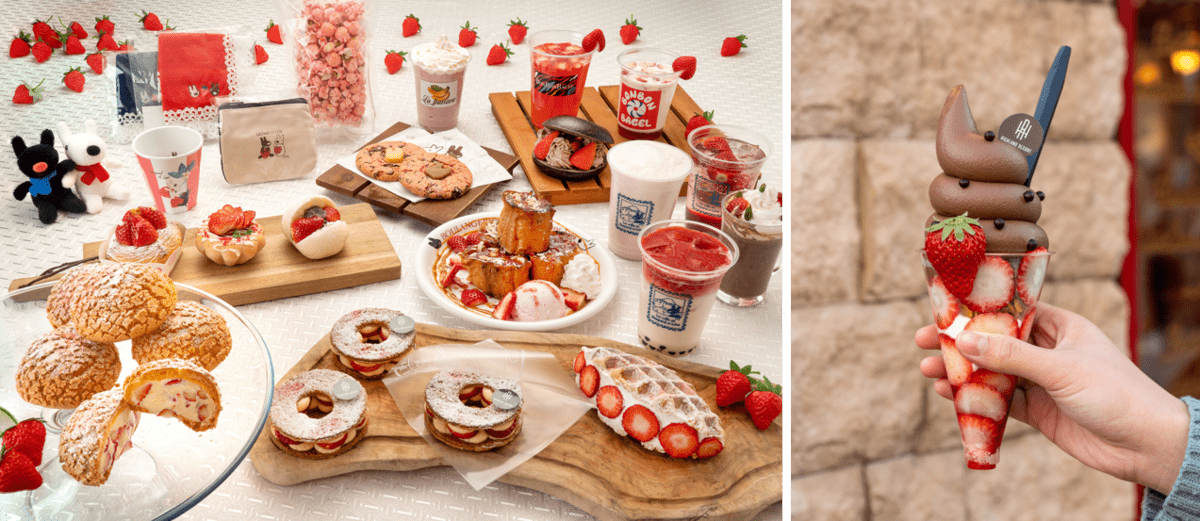 期間中、タウン内の各店舗ではホテルメイドの焼き立てパンや、食べ歩きできるワンハンドスイーツ、ドリンクなど、真っ赤ないちごをふんだんに使用した可愛さ満点のメニューが勢揃いします☆