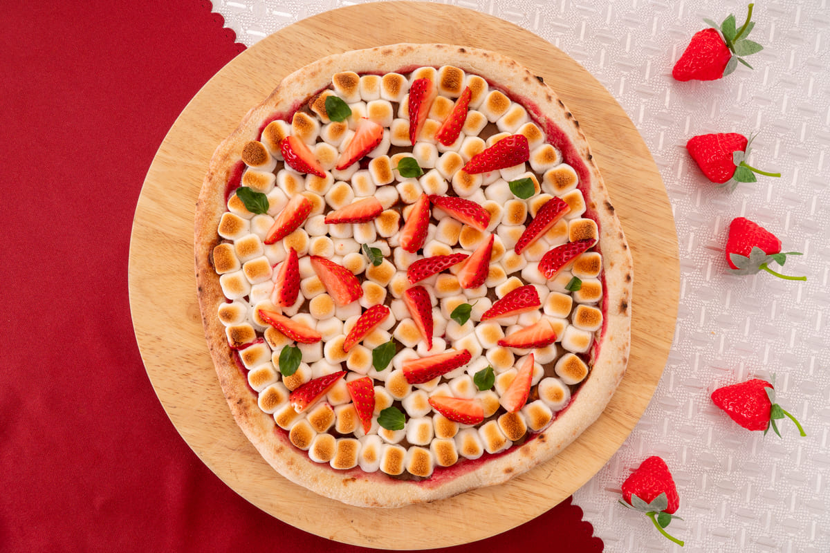 「MACARONI CLUB」では、チョコマシュマロといちごをたっぷり使用したピザが提供されます☆
