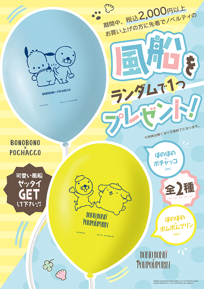 期間中、税込み2,000円以上購入された方に、先着で「風船」2種の中からランダムで1つプレゼントされます。