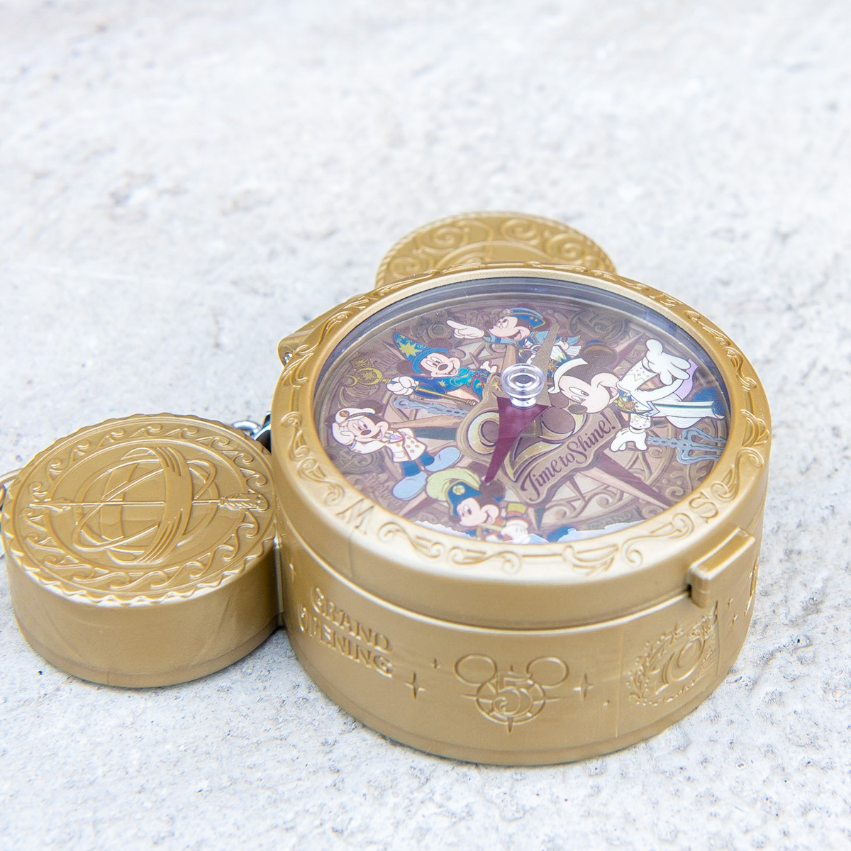 東京ディズニーシーのテーマ「冒険とイマジネーションの海へ」にぴったりの、簡易仕様のコンパスにもなるミニスナックケースです。
