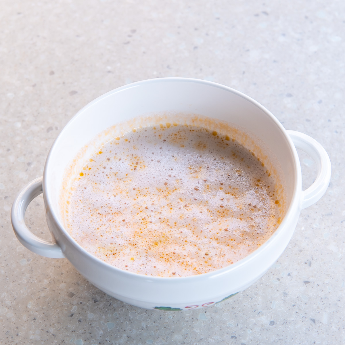 エビとチキンのクリームスープ、ビーツのフォーム