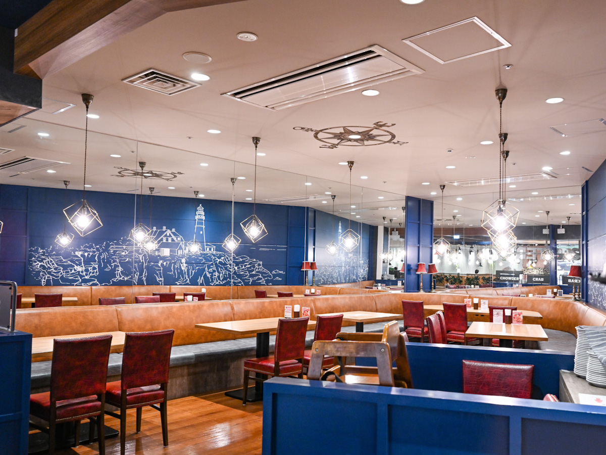 東京ディズニーリゾート内の商業施設「イクスピアリ」にある店舗「レッドロブスター 舞浜イクスピアリ店」は、海沿いのリゾート地のレストランのような内装や、木の温かみを生かした古き良きアメリカの漁村のような雰囲気が魅力です。