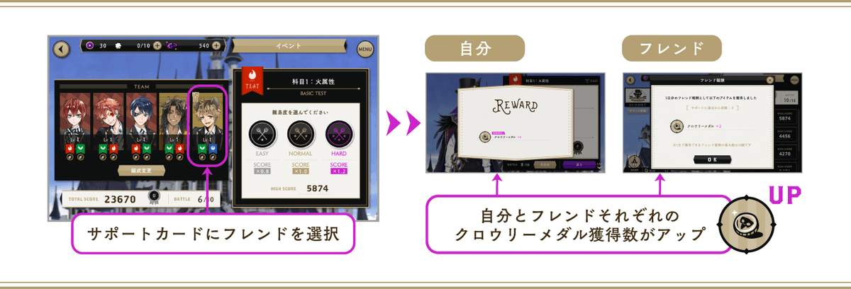 また、サポートカードに選択されたフレンドもフレンド報酬として「クロウリーメダル」を1枚獲得できます。
