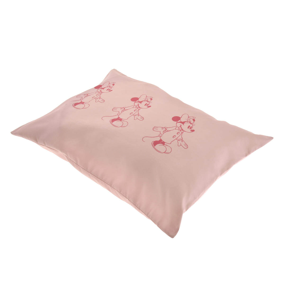 フェミニンなピンクカラーをベースにした「ミニーマウス」デザインの枕カバー。
