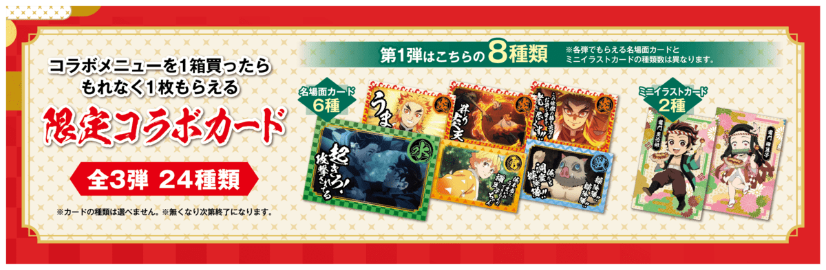 コラボたこ焼購入でもらえる 『限定コラボカード』 は、各8種類、計24種類。