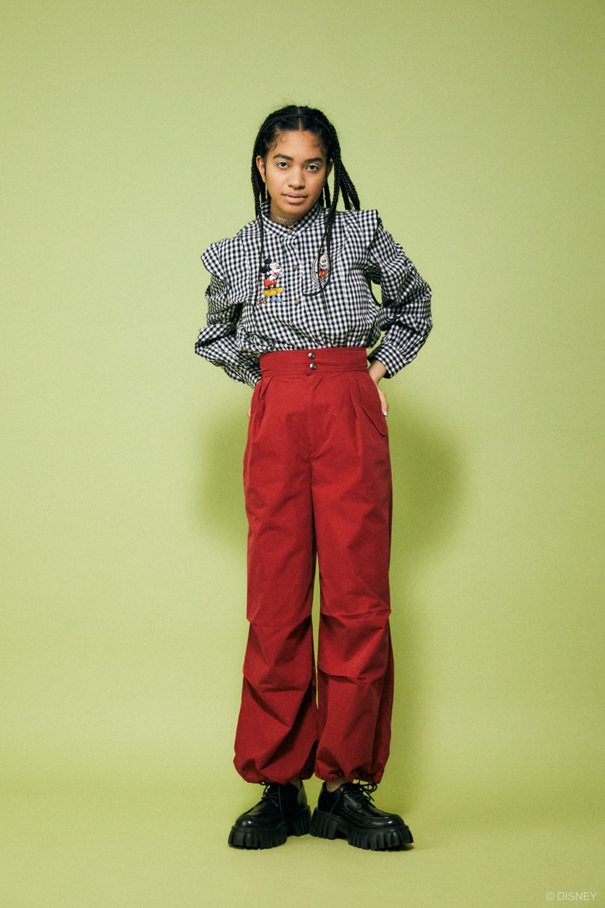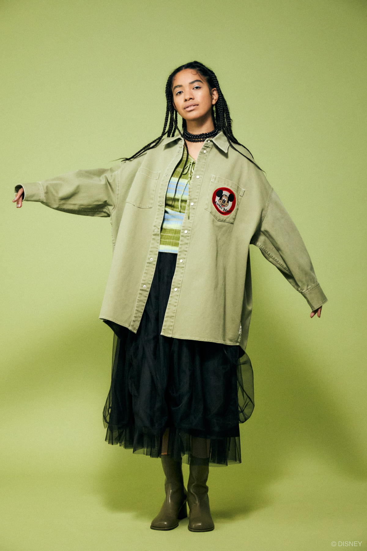 「2022 SPRING COLLECTION」では、デートに出かけるためのおめかししているような「ミッキーマウス」のアートを刺繍で表現したギンガムチェックシャツや