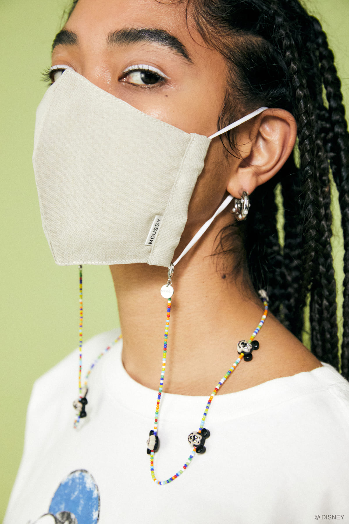 マスクに取り付けられるカラフルなチャームは「ミッキーマウス」の形をしたビーズも使用。