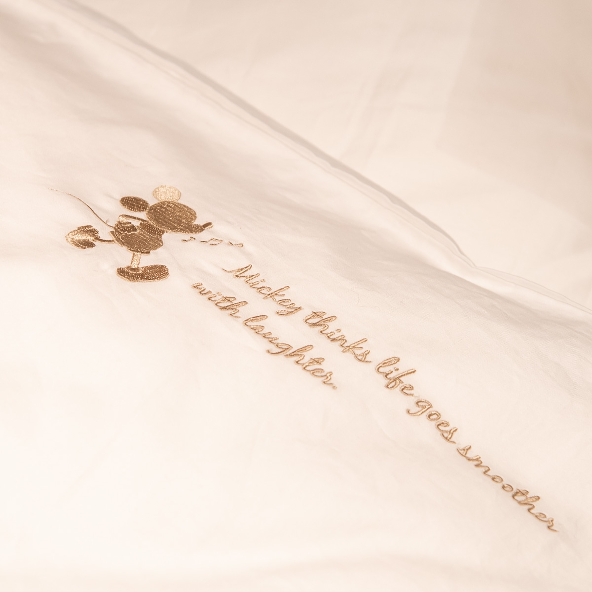 「ミッキーマウス」のワンポイント刺繍がおしゃれなピローケースやシーツ、クッションカバーも登場しています。