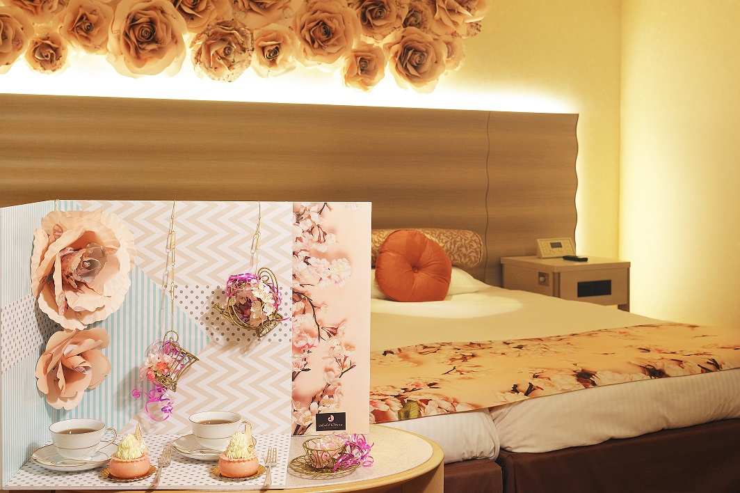 プラン内容:コンセプトルーム~サクラクルール~での宿泊、桜スイーツ2種